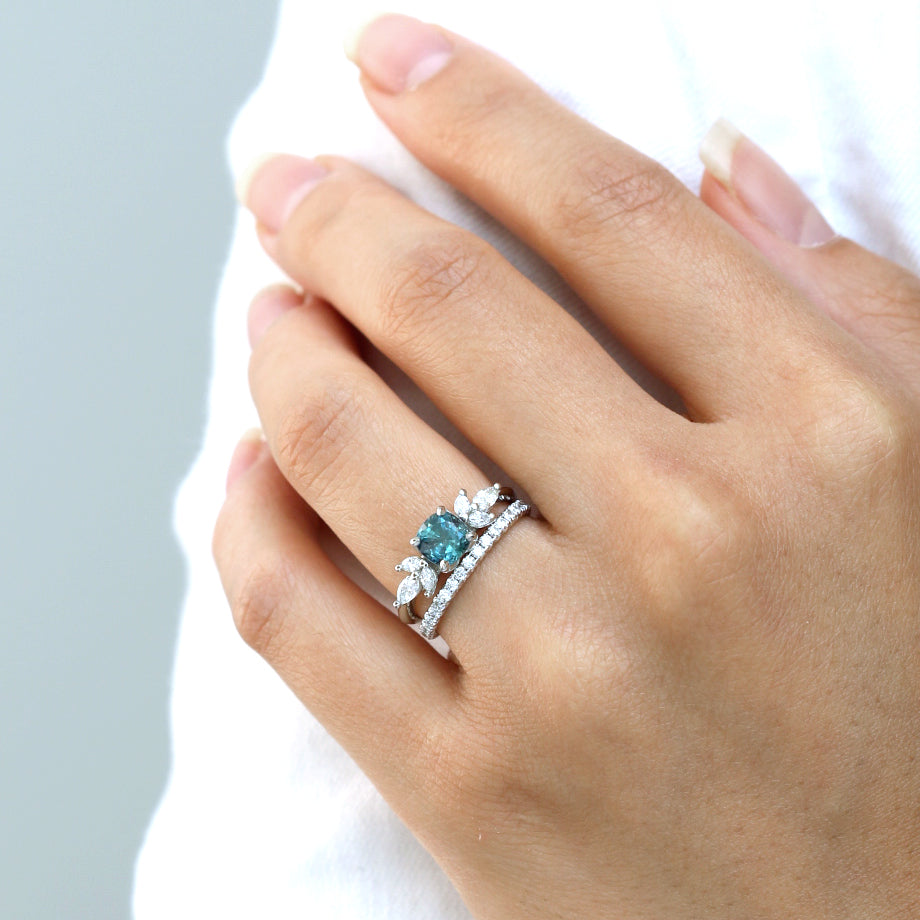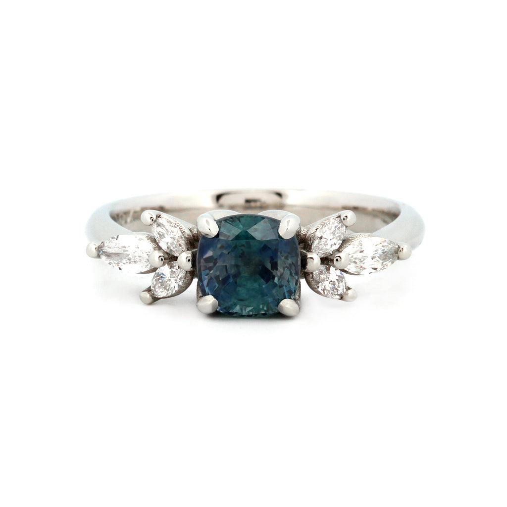 Stone: 1.08ct Peacock Blue Sapphire and Diamonds