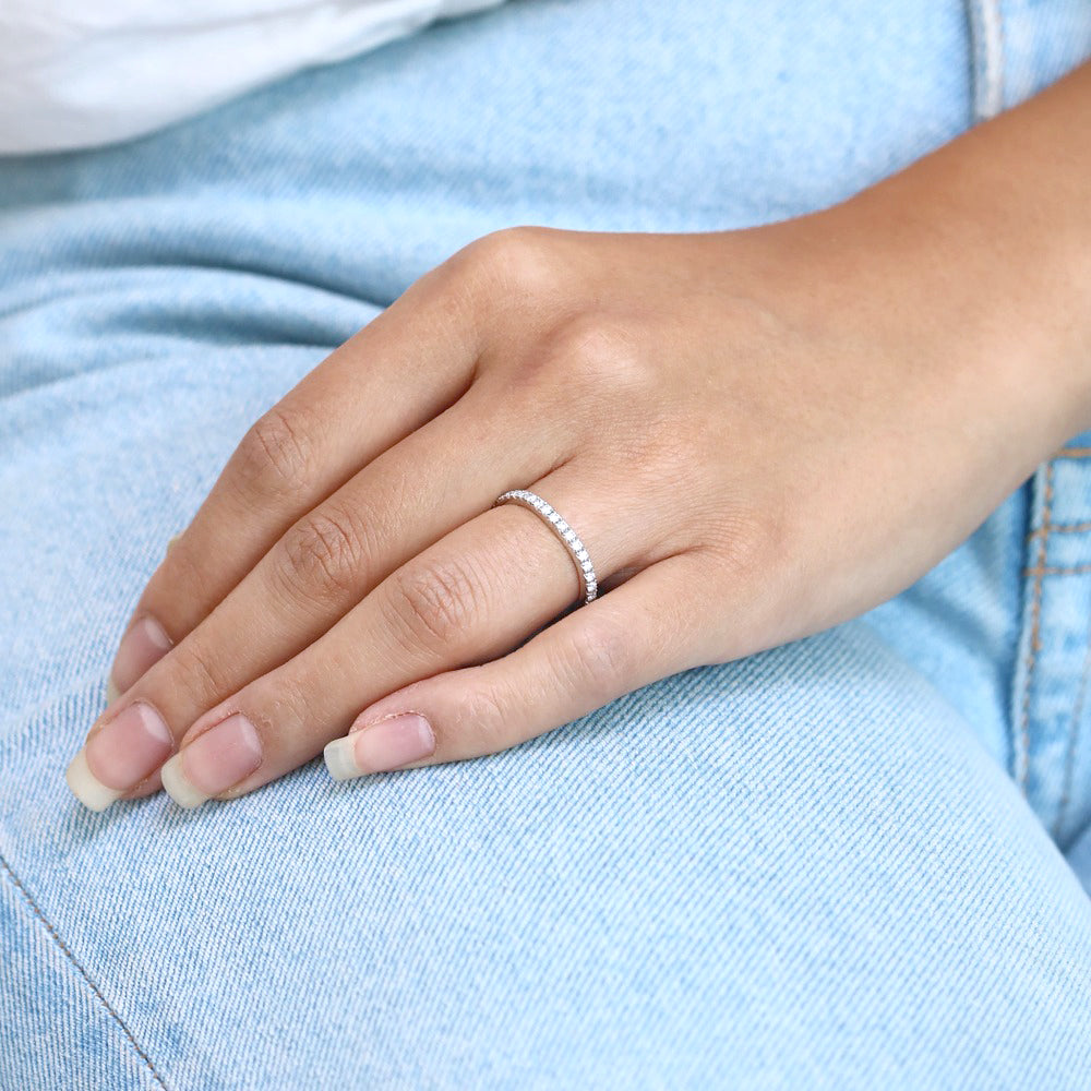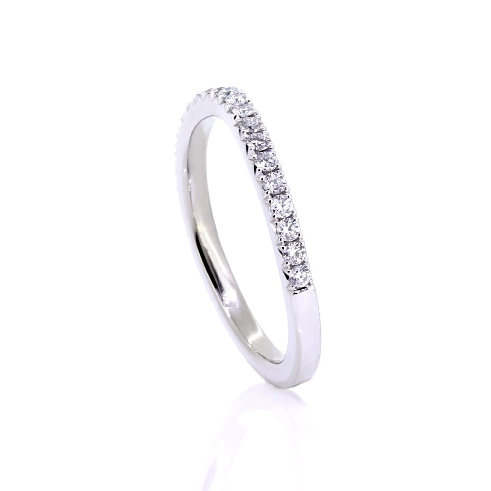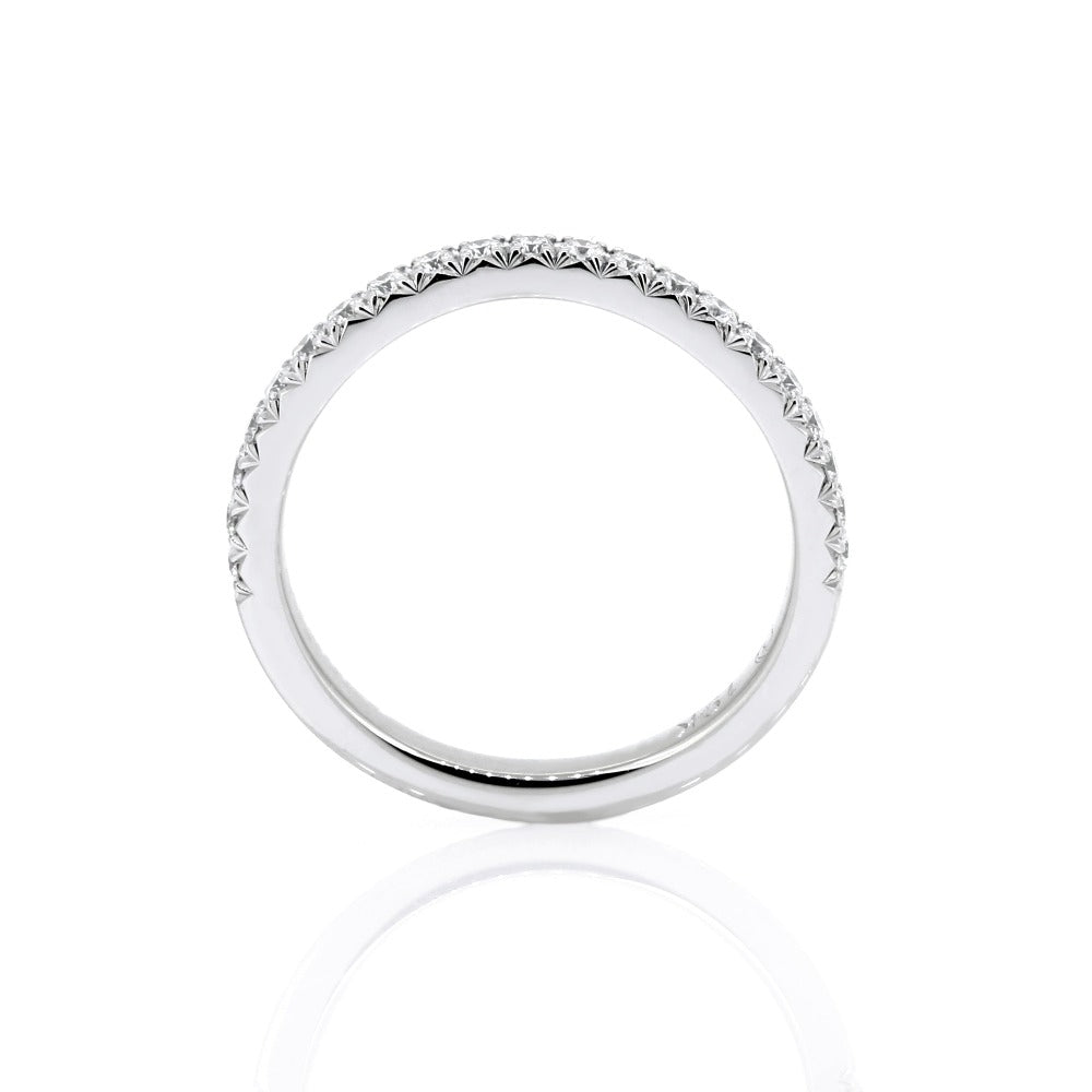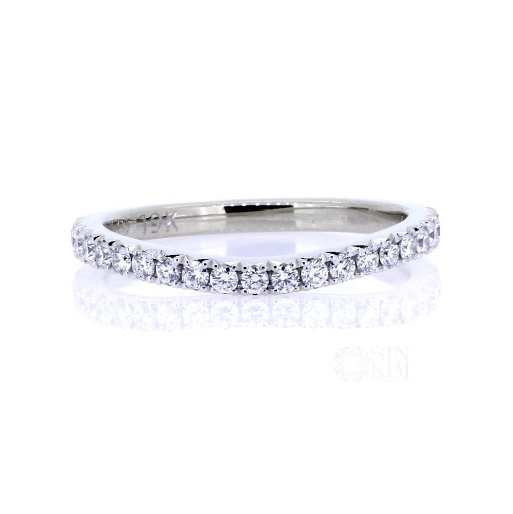 Soft curve, French cut pave, diamond wedding ring.