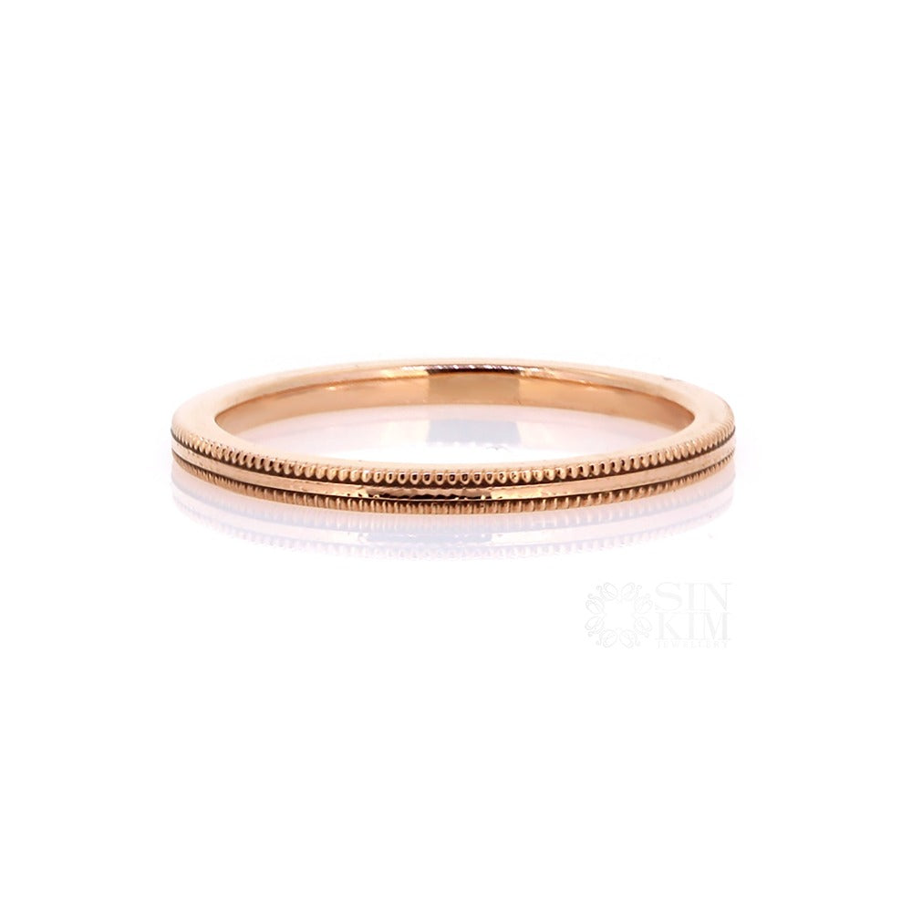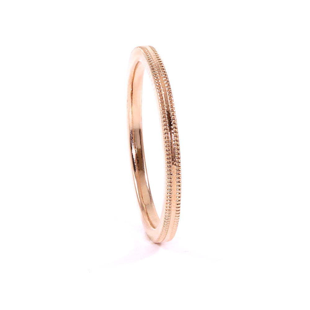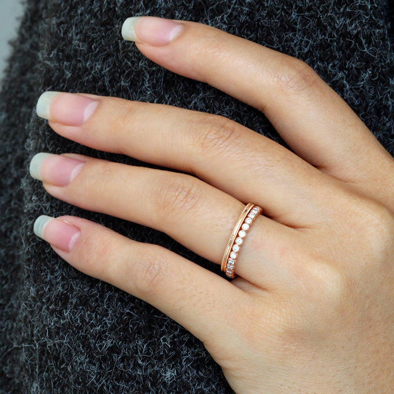 The Ariel Band is wide, flat top, with milgrain along the edge, adding a sweet vintage feel.