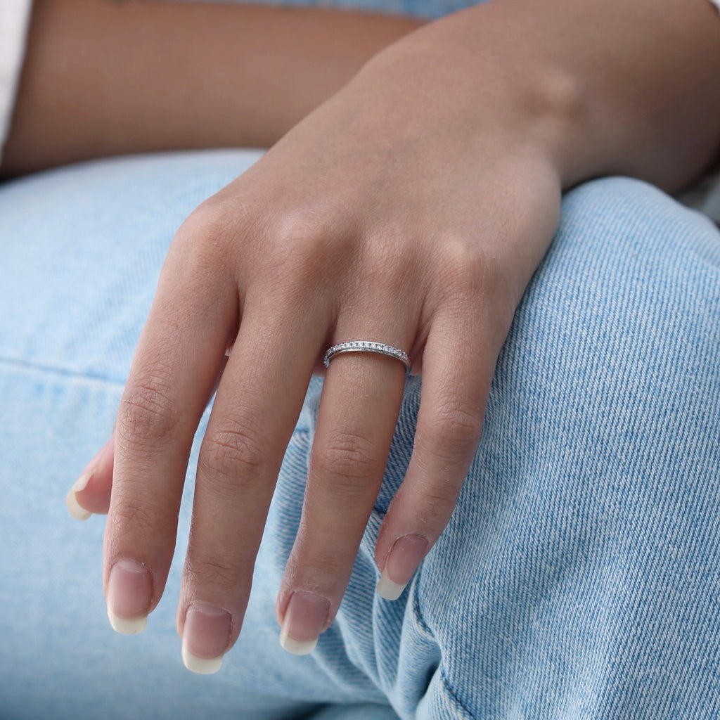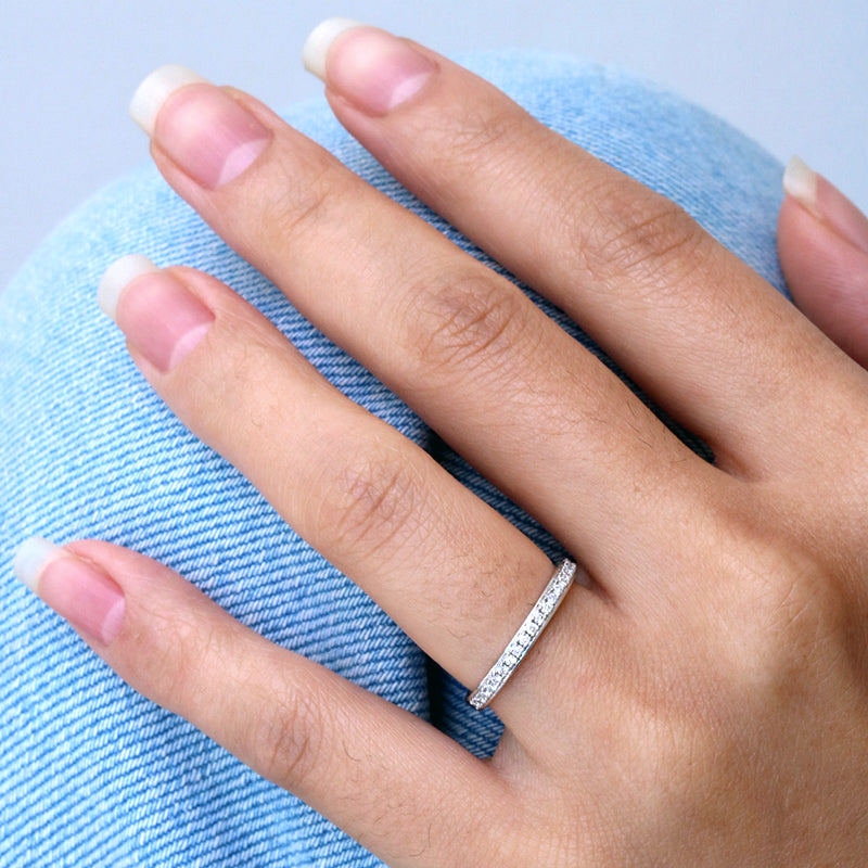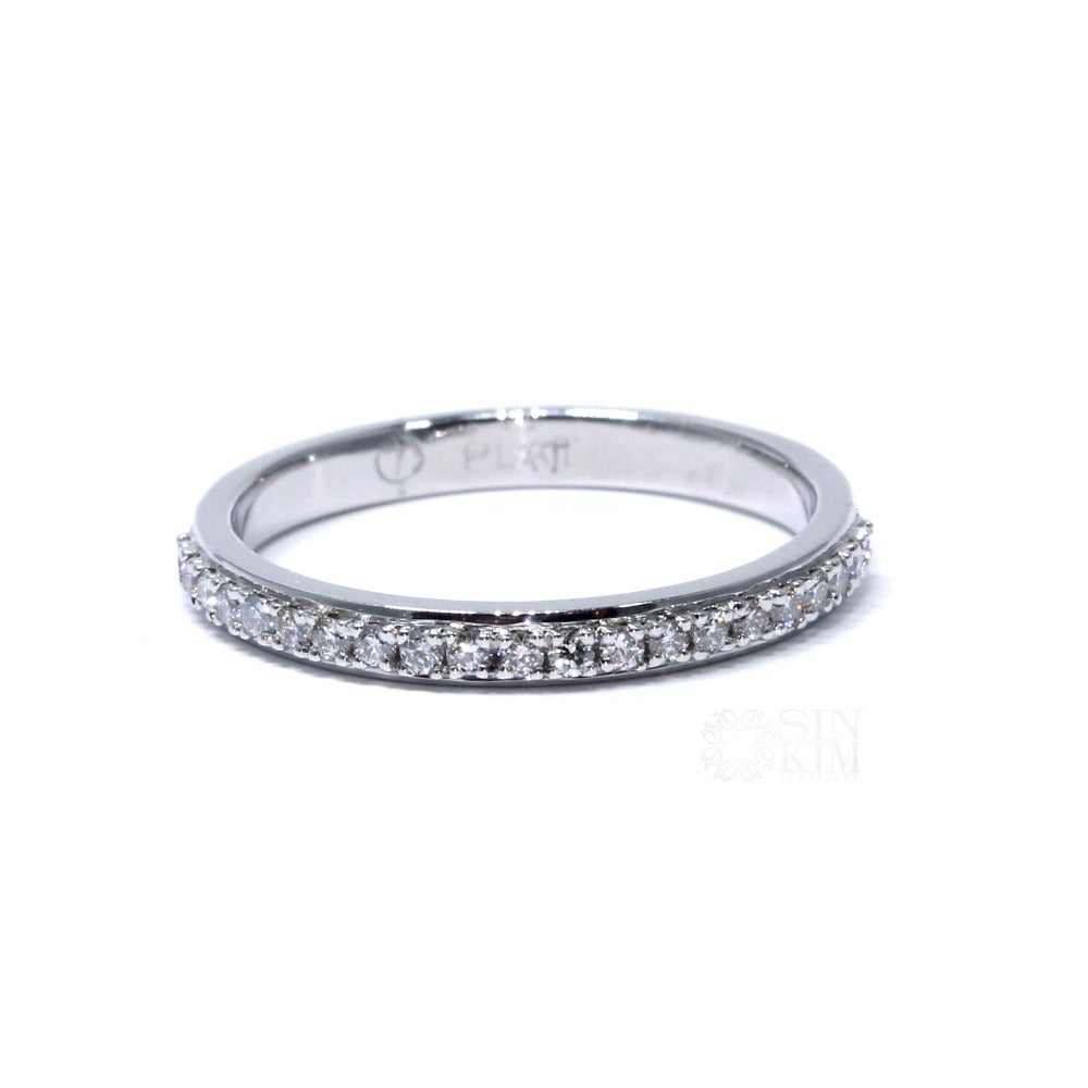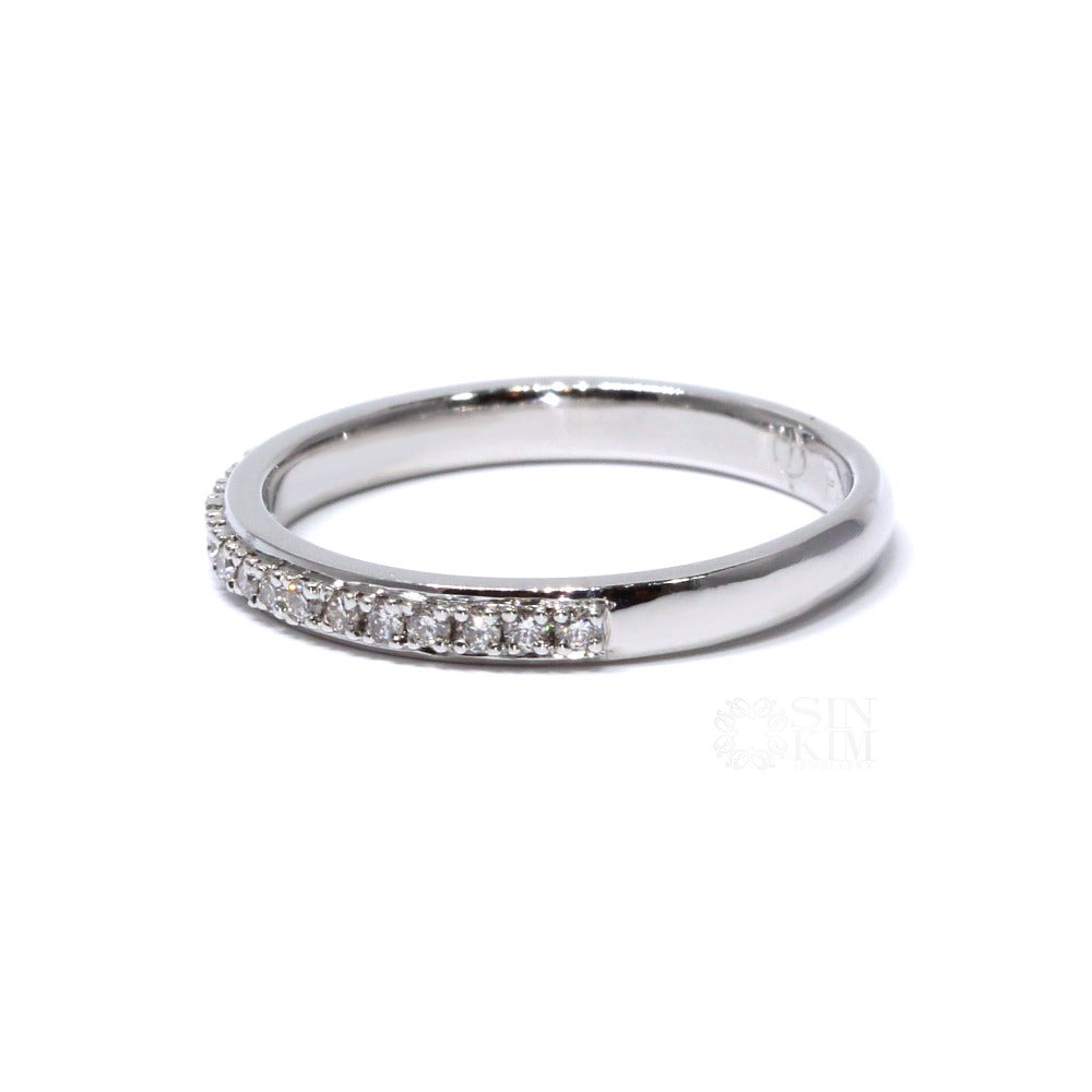 Beautiful classic 2mm wide wedding band, with a dainty trail of sparkling diamonds running down the centre.   This ring has a border along the edges, protecting the stones, giving the ring strength.