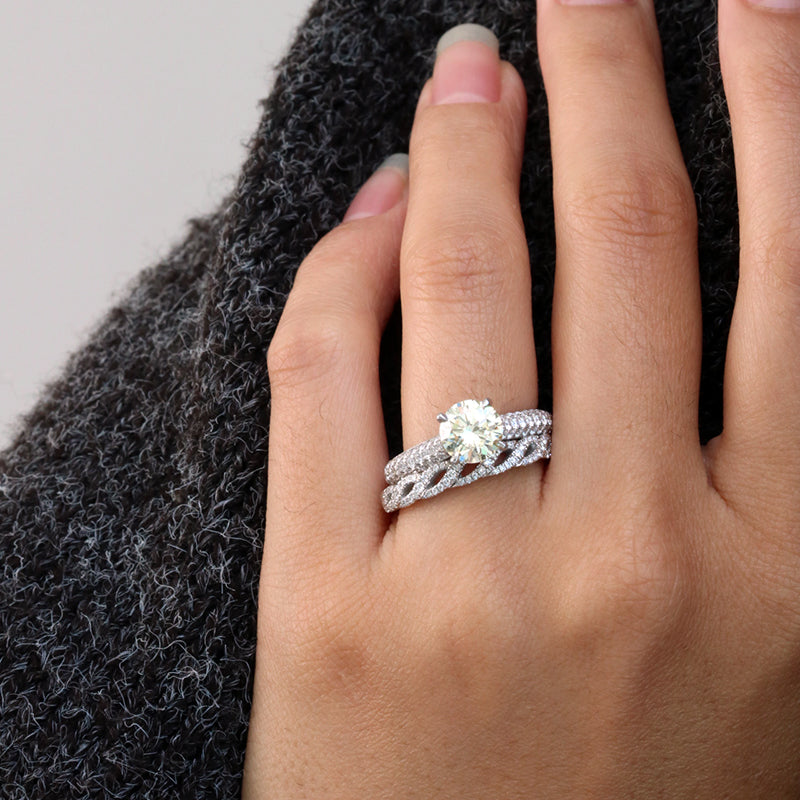 The ready to wear ring that we have in stock is set with 71, U cut micro pavé diamonds.